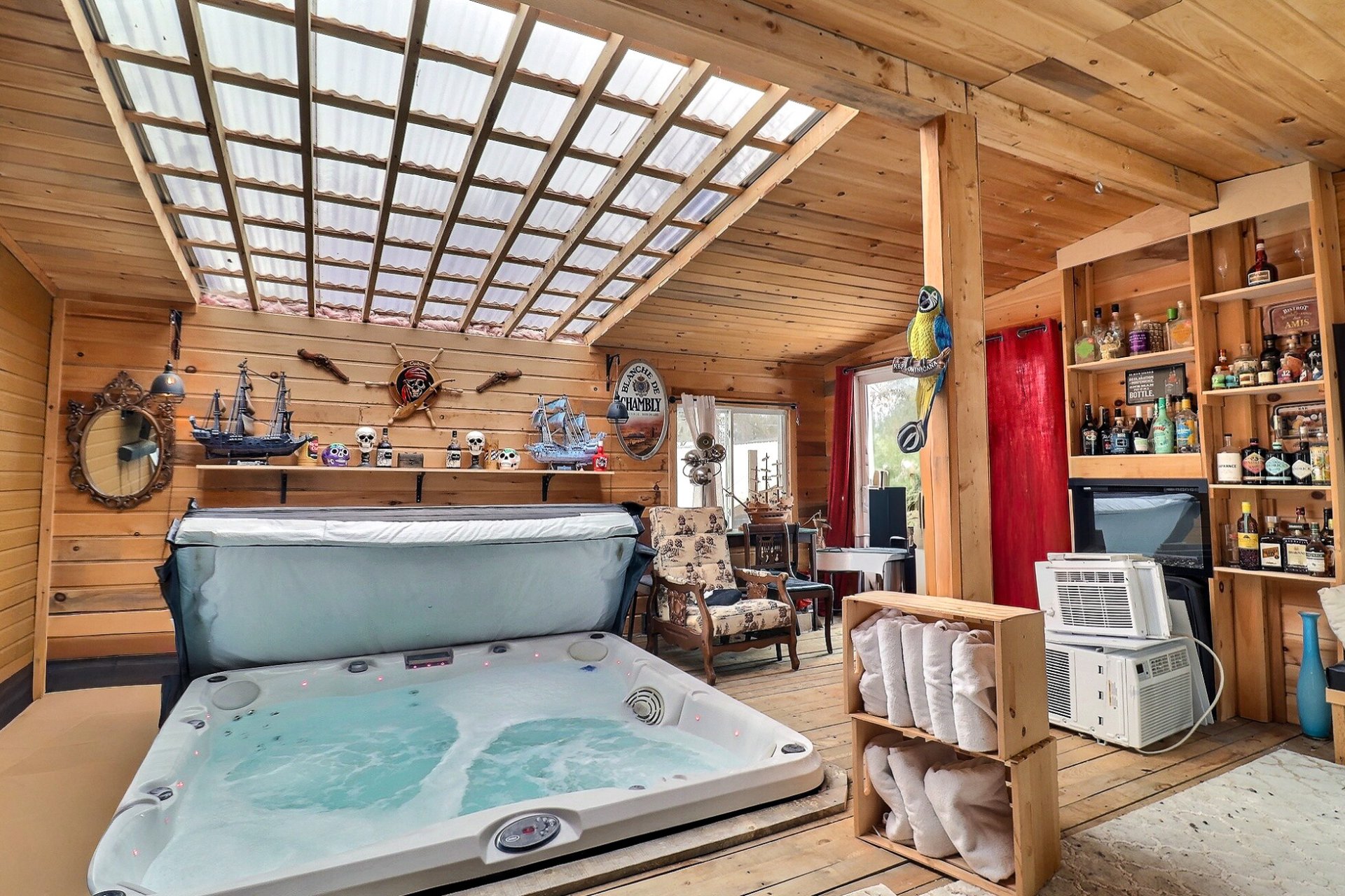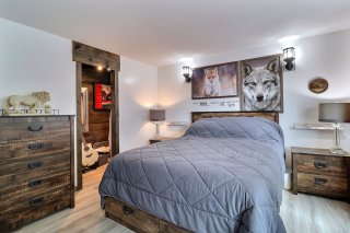 Inclus : Luminaire, meuble du walking armoire blanche dans la chambre enfant, armoire noir dans la cuisine, cabanon, spa, hotte micro-onde.